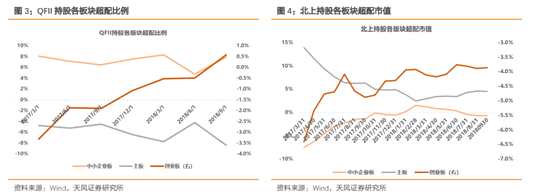 目前來看,外資中的北上資金配置上仍然偏好白馬。但無論是QFII還是北上,今年都可以看到對中小創(chuàng)配置意愿的增加。未來還可持續(xù)關注外資偏好變化。