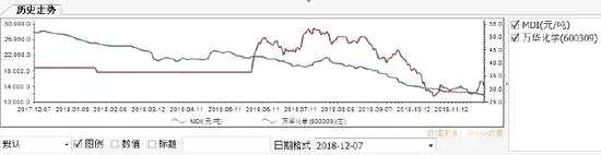 自2018年12月份開始,萬華化學(xué)中國地區(qū)聚合聚氨酯分銷市場掛牌價12900元/噸(比11月份價格下調(diào)1300元/噸),直銷市場掛牌價13500元/ 噸(比11月份價格下調(diào)1000元/噸);純聚氨酯掛牌價24400元/噸(比11月份價格下調(diào)1800元/噸)。
