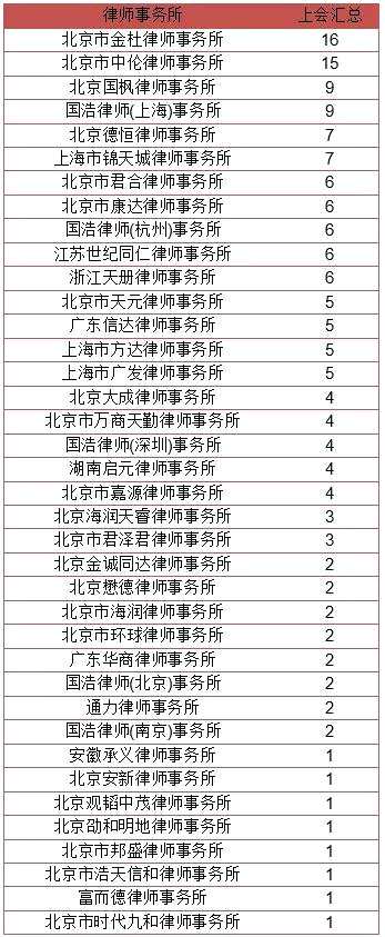 ▲數(shù)據(jù)來(lái)源:choice 如果把各地的國(guó)浩律所視為一個(gè)整體的話,則服務(wù)企業(yè)數(shù)量較多的律所有:國(guó)浩,24家;金杜,16家;中倫,15家;國(guó)楓,9家。