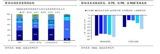 成長、消費中期前景好,短期風險收益比尷尬。我們在《策略月報-2019年可能被顛覆的三大預(yù)期-20190101》分析過,目前市場有三大一致預(yù)期:股市上半年弱下半年強、成長風格更優(yōu)、外資流入支撐消費股。機構(gòu)投資者尤其是國內(nèi)公募,對2019年成長機會很關(guān)注,從歷史看A股大小盤風格輪換周期一般2-3年,16-17年價值勝出,18年兩者關(guān)系弱化,往后看成長更優(yōu)。而對于消費股,長期視角看外資流入A股是大勢所趨,從投資風格來看,外資機構(gòu)投資者風格重消費、輕周期。中期視角下這兩個邏輯都可以,成長、消費中期前景不錯,但短期風險收益比都比較尷尬。成長板塊目前的矛盾在于,自下而上難選成長性行業(yè)和公司。市場關(guān)注較多的成長方向如5G、新能源汽車、醫(yī)藥、光伏、軍工、計算機,這些板塊以及板塊龍頭股的估值與盈利匹配度都比較差。具體來看,5G板塊的PE(TTM)為133倍,2018Q3凈利潤累計同比增速為-71.8%,新能源汽車為13.2倍、3.4%,醫(yī)藥為25倍、9.4%,光伏為21倍、2.7%,軍工為57.9倍、22.8%,計算機為44倍、-2.6%。從PEG角度來看,新能源汽車3.9倍、醫(yī)藥2.5倍、光伏為7.9倍、軍工2.7倍。對于成長類公司而言,2019年首先可能面臨的風險是業(yè)績進一步下行,1月中小創(chuàng)年報預(yù)告陸續(xù)披露,業(yè)績風險有個釋放的過程。對于消費股,目前持倉高、PE不低。截至2018Q3,除保險以外的機構(gòu)投資者普遍重倉消費板塊,QFII、陸股通(18/12)、主動偏股型基金持倉市值中消費類行業(yè)占比分別為38%、47%、44%。從估值角度看,食品飲料尤其是白酒板塊估值也不低,白酒PE(TTM)、PB(LF)(下同)分別處于05年以來自下而上28%、39%歷史分位,食品為8.5%、34%。