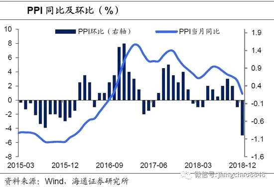 18年12月PPI大幅下降至0.9%,我們預測1月PPI將降至0左右,2月份PPI或將正式轉負,通縮風險已經(jīng)近在眼前。