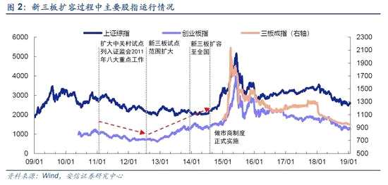 我們參考此前創(chuàng)業(yè)板和新三板的設(shè)立過程,可以發(fā)現(xiàn)無論是創(chuàng)業(yè)板設(shè)立期還是新三板擴容期,市場均呈現(xiàn)先抑后揚的模式,在初期投資者往往會擔(dān)心增量市場對于存量市場的資金分流效應(yīng),但等到增量市場正式開始運行,存量市場并沒有如前期大家所擔(dān)心的因為資金分流而導(dǎo)致下跌。