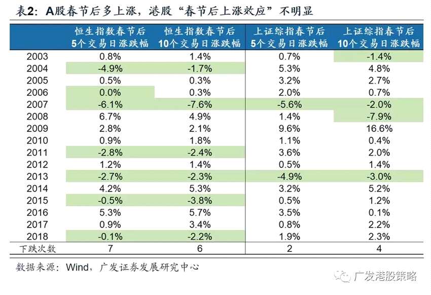 A股和港股春節(jié)后表現(xiàn)(來(lái)源:廣發(fā)證券) 對(duì)此,東吳證券認(rèn)為,A股之所以存在“春節(jié)效應(yīng)”,主要有以下幾點(diǎn)因素:一是從宏觀流動(dòng)性來(lái)看,銀行往往在年底控制信貸規(guī)模,元旦過(guò)后的一季度是信貸高峰期;二是就股市流動(dòng)性而言,經(jīng)過(guò)上年底的業(yè)績(jī)考核后,基金在一季度進(jìn)入調(diào)倉(cāng)和建倉(cāng)的高峰期,增量資金入市概率增加;三是從政策層面來(lái)看,春節(jié)之后政策密集出臺(tái)的預(yù)期有助于提振市場(chǎng)信心;四是從投資者的心態(tài)來(lái)看,春節(jié)來(lái)臨疊加年初開(kāi)始布局,投資者心態(tài)更為積極。