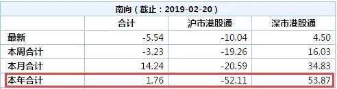 Wind統(tǒng)計(jì)數(shù)據(jù)顯示,截至2月20日,南下資金累計(jì)凈流入凈額僅1.76億元(人民幣,下同)。其中2月20日,南下資金累計(jì)凈流出5.54億元。