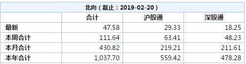 數(shù)據(jù)顯示,截至2月20日,北上資金年內(nèi)累計(jì)凈流入金額達(dá)1037.7億元,其中,滬股通累計(jì)凈流入559.42億元,深股通累計(jì)凈流入478.28億元。