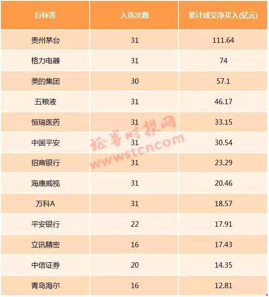 61股入選北上資金十大活躍個(gè)股榜