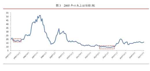 市場估值持續(xù)處于相對低位。牛市啟動前和牛市前期,市場估值一般持續(xù)位于低位。
