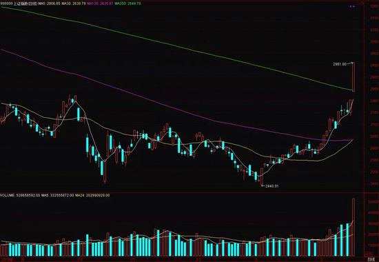 2月25日,繼2月22日上漲1.91%后,滬指單日大漲5.6%,報(bào)收于2961.28點(diǎn),離3000點(diǎn)僅一步之遙。而且股指跳空放量暴漲,一舉站上年線也預(yù)示著行情似乎非同尋常。