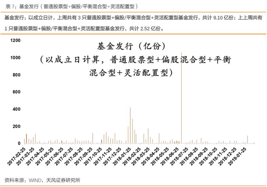 上周核發(fā)2家IPO,基金發(fā)行量上升:上周證監(jiān)會核準(zhǔn)2家IPO批文,未公布募集金額;再之前一周證監(jiān)會核準(zhǔn)2家IPO批文,未公布募集金額。以成立日計,上周共有3只普通股票型+偏股/平衡混合型+靈活配置型基金發(fā)行,共計9.10億份;上上周共有1只普通股票型+偏股/平衡混合型+靈活配置型基金發(fā)行,共計2.52億份。