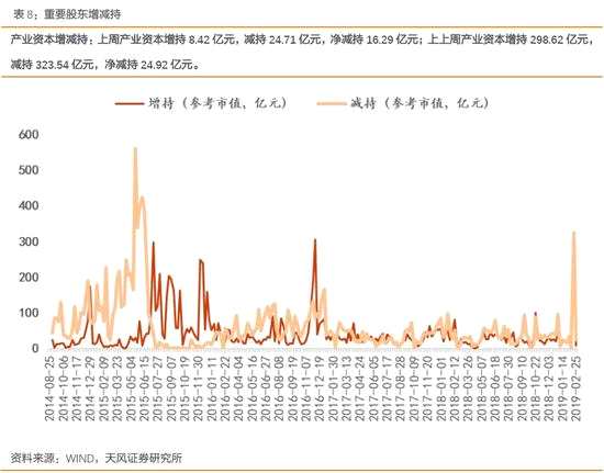 產(chǎn)業(yè)資本凈減持16.29億,北上資金流入減少:上周產(chǎn)業(yè)資本增持8.42億元,減持24.71億元,凈減持16.29億元;上上周產(chǎn)業(yè)資本增持298.62億元,減持323.54億元,凈減持24.92億元。上周滬股通流入資金114.05億,深股通流入資金80.76億,合計流入194.81億。上上周滬股通流入資金128.28億,深股通流入資金135.44億,合計流入263.71億。