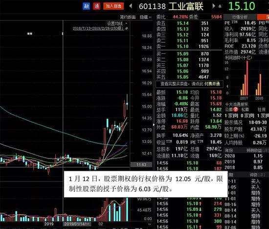據(jù)查詢,今年1月12日,公司推出了股票期權(quán)和限制性股票激勵(lì)計(jì)劃,擬授予 3375萬(wàn)份股票期權(quán)與 1.9125 億股限制性股票,股票期權(quán)的行權(quán)價(jià)格為 12.05 元/股,限制性股票的授予價(jià)格為6.03元/股。工業(yè)富聯(lián)最新股價(jià)15.10元。