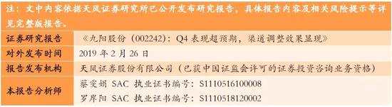公司18年四季度收入增速顯著超過(guò)前三季度,一方面公司內(nèi)銷渠道優(yōu)化調(diào)整成效逐漸顯現(xiàn),另一方面,公司10月、12月兩次分別調(diào)增關(guān)聯(lián)交易額度1億元及2000萬(wàn)元,公司四季度對(duì)SharkNinja出口顯著上升,帶動(dòng)收入端增長(zhǎng)。從產(chǎn)品上看,公司18年推出的K系列免清洗破壁豆?jié){機(jī)、靜音真空破壁料理機(jī)等新品表現(xiàn)良好。從天貓數(shù)據(jù)看,18Q4九陽(yáng)豆?jié){機(jī)銷售額同比增長(zhǎng)10.4%,均價(jià)同比提升5.3%,銷售提升的同時(shí)均價(jià)也有所提升。