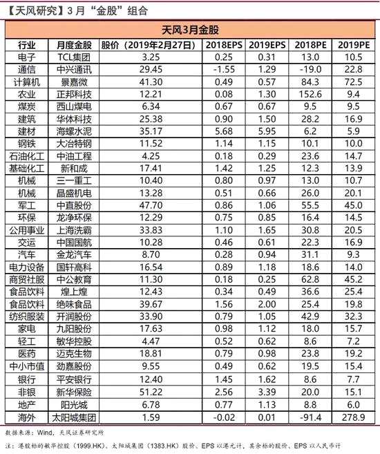 天風(fēng) · 月度金股 | 3月