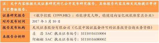敏華旗下的芝華仕頭等艙沙發(fā)市占率29.5%,芝華仕頭等艙功能沙發(fā)擁有三大重大優(yōu)勢(shì):第一,設(shè)計(jì)本土化:產(chǎn)品適應(yīng)香港及一線城市的小戶型,做出了本土優(yōu)化設(shè)計(jì);第二,產(chǎn)品具有高性價(jià)比口碑:根據(jù)我們的草根調(diào)研,敏華的功能沙發(fā)價(jià)格僅相當(dāng)于一線品牌普通沙發(fā)售價(jià),質(zhì)量口碑良好,具有超高性價(jià)比。第三,供應(yīng)鏈垂直整合帶來(lái)的巨大效率優(yōu)勢(shì)。敏華產(chǎn)量全國(guó)最大,一年出貨約90萬(wàn)套功能沙發(fā),產(chǎn)能上具有規(guī)模效應(yīng)。是國(guó)內(nèi)唯一做到自產(chǎn)核心部件功能鐵架的沙發(fā)廠商。未來(lái)計(jì)劃布局東歐低成本區(qū)域建廠,并利用智能制造進(jìn)一步優(yōu)化產(chǎn)能效率。渠道和營(yíng)銷方面,敏華在1000家門店的戰(zhàn)略渠道布局達(dá)成之后,開(kāi)始穩(wěn)步大量投放廣告及明星代言,確保收割消費(fèi)者教育的果實(shí)。