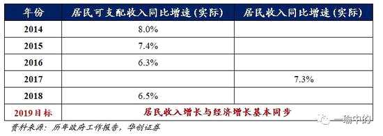 注:2015年至2017年《政府工作報告》中對過去實際值的表述為“居民可支配收入”;2018年《政府工作報告》中對過去實際值的表述為“居民收入”,2019年《政府工作報告》中對過去實際值的表述為“居民可支配收入”。