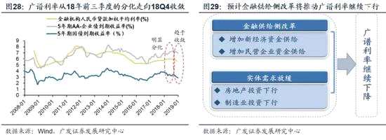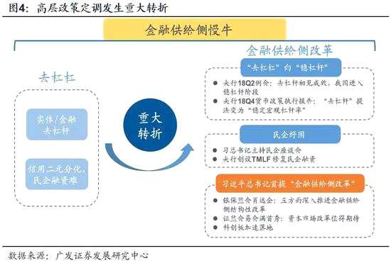 我們觀察到18年末至19年初,政策基調(diào)進(jìn)一步轉(zhuǎn)向,推進(jìn)新經(jīng)濟(jì)“寬信用”體系的搭建,從促進(jìn)廣譜利率下行和風(fēng)險(xiǎn)偏好提升兩方面對(duì)A股估值形成正向推動(dòng)。