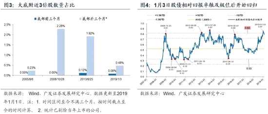 3倍股占比迅速抬升,股債回報(bào)率已觸及極值。所有底部均具有如下規(guī)律:底部后三個(gè)月3倍股數(shù)量占比>底部前三個(gè)月3倍股數(shù)量占比;除2013年大底外,均有底部后六月3倍股數(shù)量占比>底部前三月至底部后三月3倍股數(shù)量占比>底部前六月3倍股數(shù)量占比。19年1月前后3倍股數(shù)量占比已經(jīng)迅速提升。股債相對(duì)回報(bào)率極高點(diǎn)約+1.5STD。2019年1月3日的股債相對(duì)回報(bào)率達(dá)到07年以來的極值0.87,當(dāng)前已出現(xiàn)拐點(diǎn)開始回歸。