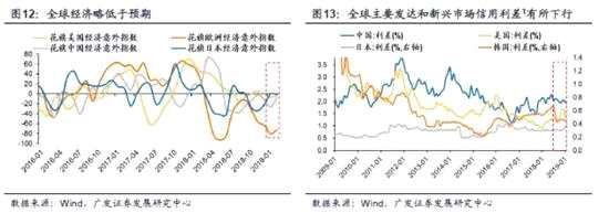 發(fā)達(dá)市場和新興市場國家信用利差陸續(xù)出現(xiàn)下行跡象,表明經(jīng)濟(jì)走弱背景下金融環(huán)境反而趨于寬松。新興市場中,2019年年初以來(截至2月末)中國信用利差小幅下降約15bp、韓國下降2bp,美國信用利差下降39bp、日本小幅上升3bp??傮w來看,無論是發(fā)達(dá)市場還是新興市場,信用利差陸續(xù)進(jìn)入下行通道,金融環(huán)境趨于寬松。