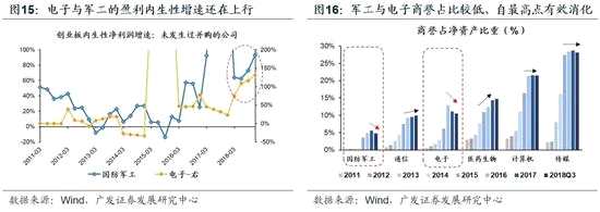 因此,綜合外延式與內(nèi)生性的業(yè)績拆分,電子和軍工的盈利趨勢相對(duì)占優(yōu)。