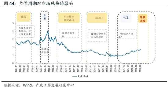 監(jiān)管放松周期對(duì)小盤風(fēng)格形成正面推動(dòng),小盤真成長將受益。監(jiān)管周期和成長股風(fēng)格存在一定的相關(guān)性:(1)2004年-2005年的監(jiān)管放松周期,大小盤風(fēng)格均衡;(2)2007年監(jiān)管收緊周期,大盤跑贏小盤;(3)2009年-2011年,銀緊證松,小盤跑贏大盤;(4)2013年-2015年上半年,監(jiān)管放松周期,小盤跑贏大盤;(5)2016年7月-2018年Q3,監(jiān)管收緊周期,大盤跑贏小盤。當(dāng)前監(jiān)管步入緩和周期,壓制小盤股估值因素減輕,小盤真成長孕育大牛股。