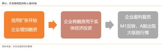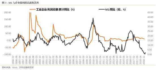 從本質(zhì)上來說,M1主要由企業(yè)部門的活期存款組成,代表了企業(yè)部門短期流動性的情況。而企業(yè)部門的短期流動性與企業(yè)的盈利情況息息相關(guān),當(dāng)企業(yè)盈利復(fù)蘇的時候,通俗講,意味著企業(yè)開始賺錢了,于是短期流動性(M1)就開始提升了。