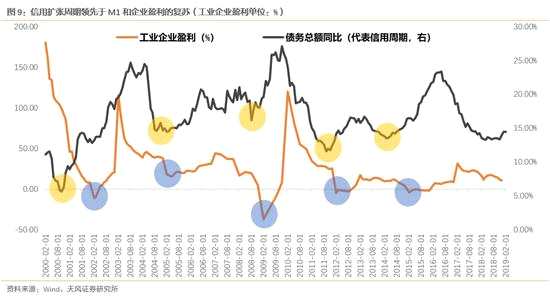 因此,可以預(yù)見,這一次信用擴(kuò)張周期從底部走出來的過程中,M1和企業(yè)盈利的拐點可能比以往滯后更久一些。