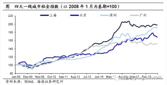 以四大一線城市為例,雖然從07年到18年,房租價(jià)格也漲了80%,但其實(shí)折算成年化漲幅只有5.5%,遠(yuǎn)低于同期12%的房?jī)r(jià)漲幅,因此其余一半房?jī)r(jià)上漲其實(shí)來(lái)自于房?jī)r(jià)租金比的上升,這其實(shí)就是賺了交易的錢(qián)。