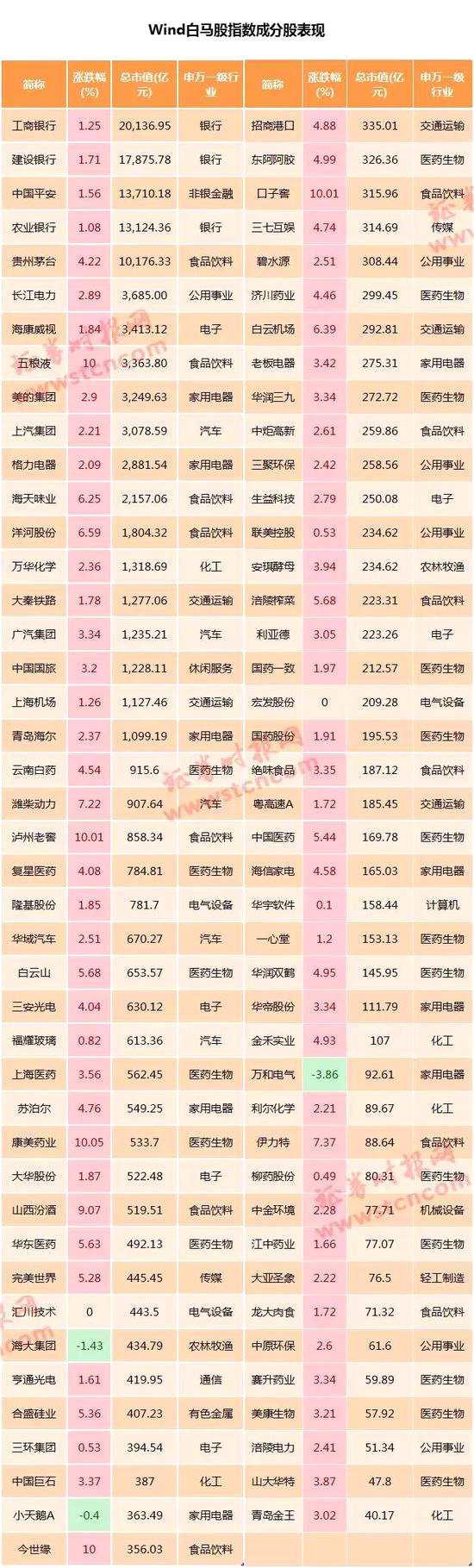 另外,上述成分股中,市值居前10的股票全部實現(xiàn)上漲。