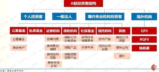 依據(jù)投資主體,A股市場(chǎng)投資者可分為:個(gè)人投資者、一般法人、境內(nèi)專業(yè)機(jī)構(gòu)投資者、和境外機(jī)構(gòu)四大類。