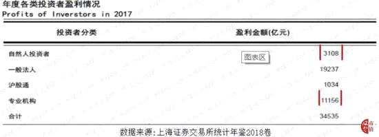 僅就2017年滬市數(shù)據(jù)來說,個(gè)人投資者的持股市值是專業(yè)機(jī)構(gòu)的1.31倍,盈利金額卻僅有后者的28%,看似盈利能力要落后于專業(yè)機(jī)構(gòu)。