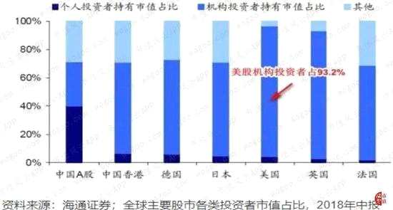 【海通證券(600837)、股吧】研報(bào)顯示,2018年年中,美國(guó)機(jī)構(gòu)投資者持有市值占比高達(dá) 93.2%,個(gè)人投資者持有市值占比不到6%。
