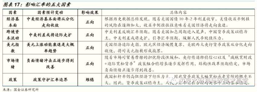 第五,政策守護(hù)匯率邊界。政策在短期同樣影響匯率波動?,F(xiàn)階段,國內(nèi)貨幣政策受經(jīng)濟(jì)下行壓力以及企業(yè)杠桿率高兩方面掣肘,政策將“以穩(wěn)為主”,匯率大幅上漲和下跌的可能性低。具體來看,若匯率大幅上漲,貨幣政策邊際將更加寬松,以應(yīng)對國內(nèi)經(jīng)濟(jì)下行壓力。另一方面,若匯率大幅下跌,貨幣政策將使用各種操作工具并動用外匯儲備穩(wěn)住匯率波動。一般情況下,央行一般從三提高做空成本、直接進(jìn)行交易以及穩(wěn)定市場預(yù)期三個(gè)方面對匯率進(jìn)行管理。因此,貨幣政策將時(shí)刻關(guān)注國內(nèi)外市場變化,保持人民幣匯率在合理均衡水平上的基本穩(wěn)定。