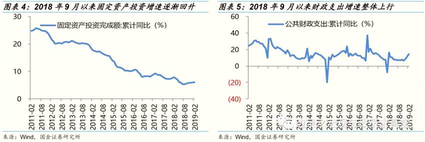 1、內(nèi)部:我國經(jīng)濟(jì)增速已渡過快速下降期。1)從總需求的角度出發(fā),2018年經(jīng)濟(jì)下滑較多。“幸存者偏差”導(dǎo)致生產(chǎn)法與支出法GDP出現(xiàn)背離,生產(chǎn)法GDP可能高估經(jīng)濟(jì)增速。2)我國經(jīng)濟(jì)增速已渡過快速下降期。我們在2018年10月提出,從實(shí)際最終需求的角度來看,經(jīng)濟(jì)增速已經(jīng)渡過快速下降期。2H18實(shí)際最終需求相對穩(wěn)定。隨著逆周期政策的轉(zhuǎn)向,年初以來投資表現(xiàn)相對較好,財(cái)政支出保持高速增長,外貿(mào)衰退式順差,總需求大幅下行風(fēng)險(xiǎn)消除。