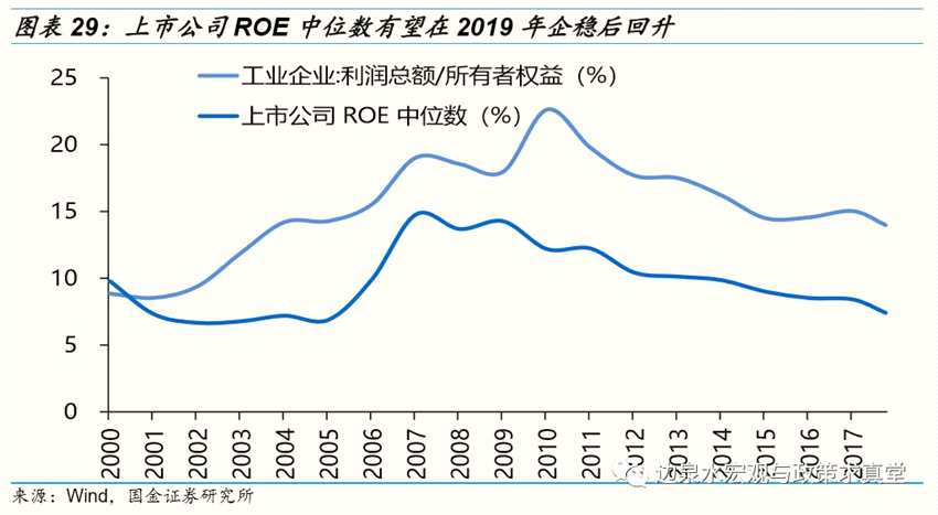 六、ROE:2019年整體A股ROE中位數(shù)有望筑底,并在未來幾年逐漸回升