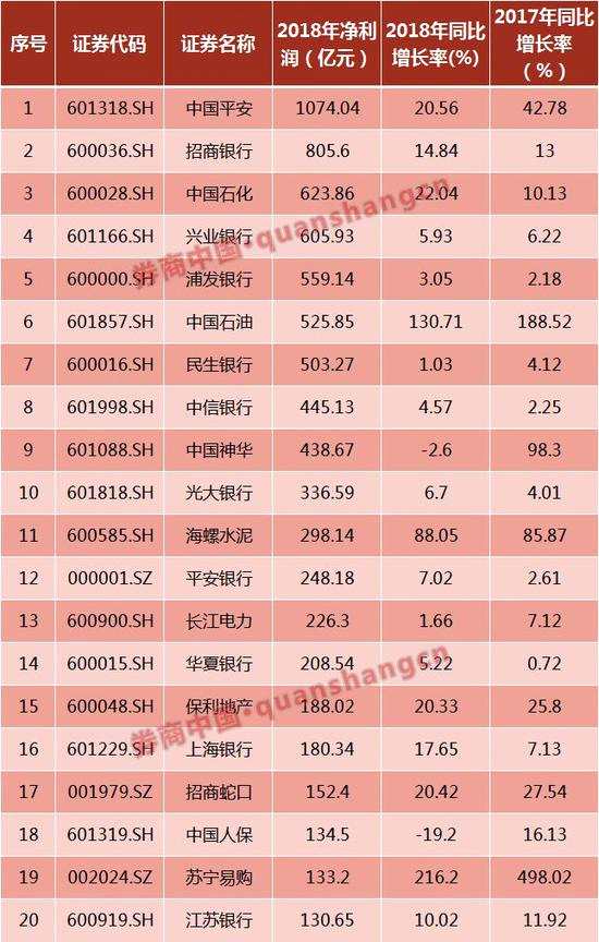 從盈利增長情況看,除【中國神華(601088)、股吧】和中國人保外,其余18家公司均實現(xiàn)凈利潤同比增長,但整體看,同比增幅大多較2017年有所下滑。