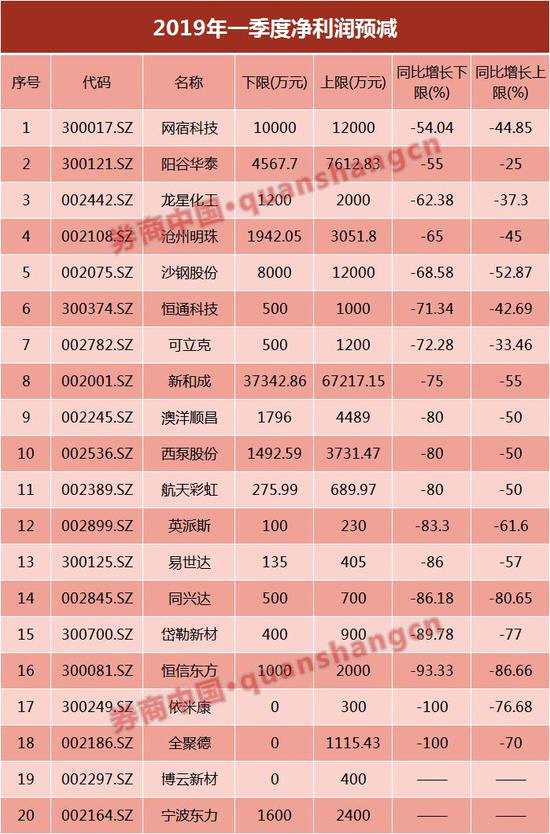 同時值得注意的是,在已發(fā)布一季度預(yù)告的A股上市公司中,預(yù)減公司共有20家,凈利潤同比降幅均超過30%。