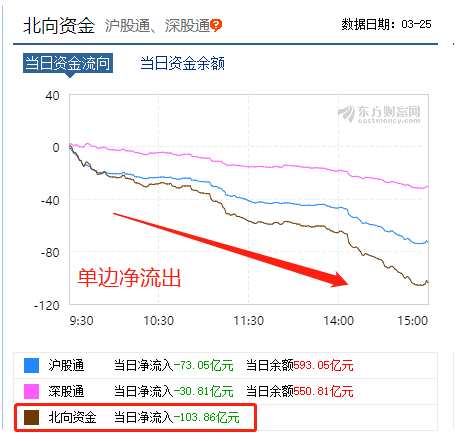 昨日,上證指數(shù)暴跌1.97%,北上資金罕見兇猛流出104億元;,其中滬股通凈流出73.05億元,深股通凈流出30.81億元。逾百億資金凈流出,也創(chuàng)出了歷史次高,僅次于2015年7月6日股災(zāi)時。