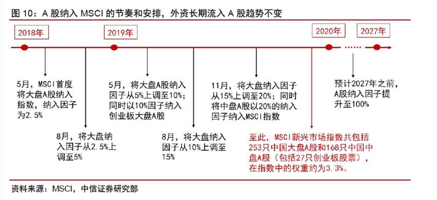 A股納入MSCI的節(jié)奏和安排。數(shù)據(jù)來源:中信證券研究院