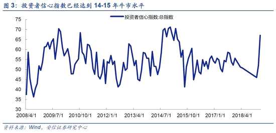 從這個(gè)層面來(lái)看,當(dāng)前市場(chǎng)已經(jīng)脫離了類(lèi)似2012年熊市狀態(tài),實(shí)際上熱度已經(jīng)與2014-2015年相當(dāng),投資者信心指數(shù)達(dá)到14-15年牛市水平。中國(guó)證券投資者保護(hù)基金公司公布的數(shù)據(jù)顯示,2月投資者信心指數(shù)為67.1,較1月的51.9大幅上升15.2點(diǎn),創(chuàng)下2015年2月以來(lái)新高。這一水平僅次于2009年11月(70.4)和2014年9月-2015年3月(71.2)牛市水平。主要指數(shù)的流通市值換手率均接近甚至超過(guò)2014-2015年牛市時(shí)水平。