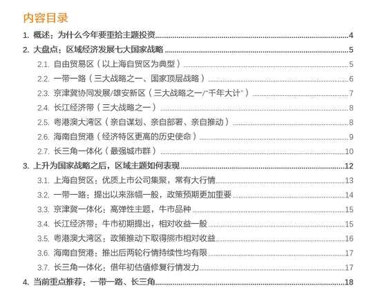 年初以來,久跌的A股市場借估值修復(fù)邏輯走出了相當(dāng)亮眼的行情,主要指數(shù)都有不俗的漲幅;與此同時,沉寂多時的主題投資也再度雀躍,彰顯高β屬性。借長三角上升為國家戰(zhàn)略后相關(guān)板塊的發(fā)酵,本文從主題投資架構(gòu)出發(fā),聚焦區(qū)域經(jīng)濟主題;以政策為軸,盤點十八大以來上升為國家戰(zhàn)略的、具有標(biāo)簽意義的區(qū)域主題。