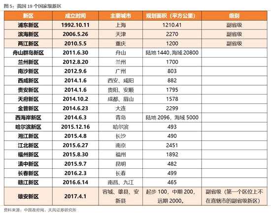 雄安新區(qū)的起步區(qū)面積約100平方公里,中期發(fā)展區(qū)面積約200平方公里,最終遠(yuǎn)期控制區(qū)面積要到2000平方公里(北京主城區(qū)面積只有1381平方千米)。區(qū)域特點上,雄縣擁有白洋淀水域面積18.3平方公里,建有中國北方最大的內(nèi)陸碼頭;安新縣擁有豐富的水利資源,境內(nèi)的白洋淀是大清河水系重要的水利樞紐;容城緊臨北京周邊最大的小商品集散地,且擁有豐富的地?zé)豳Y源。值得注意的是,截止18年底,我國的19個國家級新區(qū)中,雄安新區(qū)是唯一一個區(qū)位上不在直轄市的副省級新區(qū)。