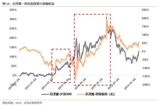 第二波行情-2015.6.5-2017.4.11:橫跨快熊-結(jié)構(gòu)性慢牛兩個階段,取得相對收益的持續(xù)性極高。14年末中央經(jīng)濟工作會議首次將一帶一路、京津冀、長江經(jīng)濟帶合稱為三大戰(zhàn)略;16年中央經(jīng)濟工作會議部署三大戰(zhàn)略時將京津冀寫在首位;17年4月1日推出雄安新區(qū)(此后因波動率過大多只股票被特停)。在大牛行情里,政策概念的彈性并不是最突出的。但整體來說,有政策加成的情況下,京津冀概念的穩(wěn)健性較高。