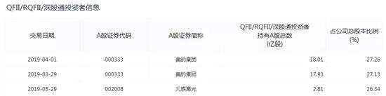 據(jù)了解,目前,滬深交易所每日會(huì)對(duì)QFII/RQFII/陸股通合計(jì)持股比例超過26%的公司進(jìn)行公示。上交所的這一數(shù)據(jù)自2018年6月15日后,一直未有新的變動(dòng);而深交所的數(shù)據(jù)則顯示,在3月29日時(shí),仍有【美的集團(tuán)(000333)、股吧】、大族激光兩家公司的外資持股比例超過26%。但在4月1日時(shí),大族激光“消失”了,也就說在4月1日時(shí)外資對(duì)大族激光的持股比例已低于26%。