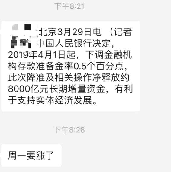 3月29日(周五)傍晚,一則“4月1日起降準(zhǔn)”的謠言在微信群流傳開來。