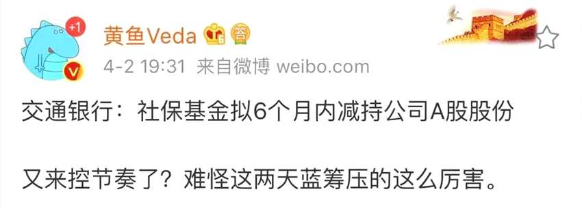 今晚(4月2日),【交通銀行(601328)、股吧】一則大消息,瞬間驚動(dòng)了整個(gè)A股。作為市場(chǎng)一股力量——社保基金,要大比例減持交行A股股份。