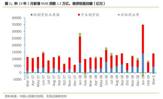 我們預(yù)計(jì)3月新增貸款1.3萬(wàn)億(18年同期1.12萬(wàn)億,2月8858億),同比及環(huán)比均明顯多增,信貸顯著回暖。從結(jié)構(gòu)來(lái)看,料企業(yè)貸款+8000億,其中,票據(jù)+2500億,中長(zhǎng)期+5000億,企業(yè)貸款增長(zhǎng)較好;住戶(hù)+6000億:中長(zhǎng)期+4500億,短期+1500億,住戶(hù)貸款增長(zhǎng)穩(wěn)健。此外,預(yù)計(jì)3月非銀行業(yè)金融機(jī)構(gòu)貸款-1000億。