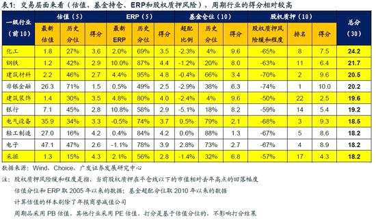 周期細(xì)分行業(yè)中,有色(基本金屬)仍處產(chǎn)能+庫存周期相對底部,經(jīng)濟(jì)增長預(yù)期改善下“去產(chǎn)能”+“低庫存”有望改善行業(yè)盈利預(yù)期。綜合估值、ERP、基金超配比例、股權(quán)質(zhì)押風(fēng)險(xiǎn)構(gòu)建的打分系統(tǒng)中,受益于油價(jià)上漲的化工(PVC、純堿、聚酯、MDI等)綜合得分第一,交易結(jié)構(gòu)最優(yōu)。