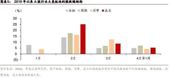 年初以來市場風格經歷四次切換。指數方面:1月市場風格偏大(指數漲跌幅:上證50>滬深300>中證500>創(chuàng)業(yè)板指)→2月市場風格偏?。ㄖ笖禎q幅:創(chuàng)業(yè)板指>中證500>滬深300>上證50)→3月市場風格相對偏小(指數漲幅:創(chuàng)業(yè)板指>滬深300>上證50)→4月第1周風格相對偏大(指數漲幅:滬深300>創(chuàng)業(yè)板指),但3月和4月第1周這兩個階段,中證500均跑贏上證50、滬深300、萬得全A、中小板指、創(chuàng)業(yè)板指等主要指數。指數特征反映3月以來流動性和盈利兩條邏輯線在糾結切換,資金更傾向于填中證500的估值洼地。板塊方面:四大行業(yè)板塊金融、周期、消費、成長中,1月金融板塊漲幅第1,消費第2;2月成長顯著跑贏其他三個板塊;3月消費第1,成長第2;4月第1周,周期第1,成長第2。板塊特征與指數相似,3月消費防守、4月周期進攻事實上均在填估值洼地。成長始終收益靠前,呈底倉配置特征,板塊間并未此消彼長,呈增量市特征,我們認為這意味著3月震蕩的平臺位置奠定了下一階段行情的底部。