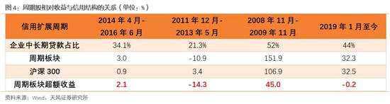 ?。?)2009年的信用擴展周期中,企業(yè)部門中長期貸款的整體占比為52%,信用結(jié)構(gòu)非常不錯,對應盈利改善幅度較大,從而順周期板塊相對表現(xiàn)較好。