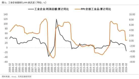 2018年的5-8月是PPI基數(shù)最高的階段,單月同比都在4%以上,對應2019年的5-8月,如果不出現(xiàn)新的漲價因素,那么通縮的概率就非常大,也是同時是工業(yè)企業(yè)盈利今年二次探底的階段。